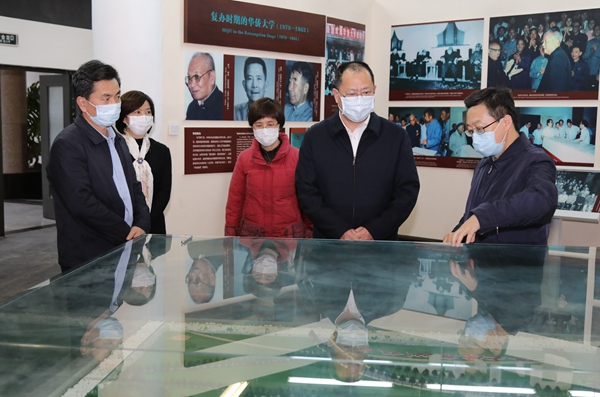 在校长徐西鹏、副校长王秀勇的陪同下,张毅恭一行先参观了我校校史馆,登临行政研发大楼26层俯瞰校园,深入了解学校的办学历史、基本情况以及校园规划建设等。