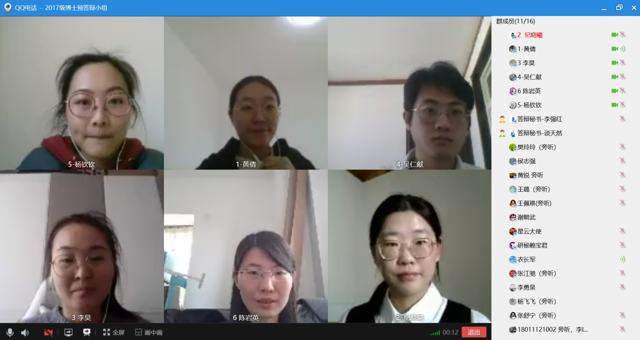 为切实做好研究生学位论文线上预答辩工作,各学院根据自身情况制定了多种灵活多样的预答辩方案,包括依托钉钉、腾讯会议、企业微信会议等平台进行远程视频会议,学生视频提前录制结合专家线上评议、书面形式的学位论文评审等,为线上预答辩工作做好了充分的前期准备。其中,工学院的预答辩采用远程会议形式,学院前期做足功课,进行方案论证、测试会议平台、发布预案细节、多次演练、建立工作群组等,线上预答辩非常顺利。旅游学院为保证预答辩的顺利进行,在正式预答辩前开展了多次模拟演练。预答辩会议通过QQ视频在线形式召开,参加预答辩的56名学生分别安排在7个小组,每个答辩组由5到7名专家组成。其中,博士答辩组还特别邀请北京第二外国语大学张凌云教授、华侨大学工商管理学院衣长军教授进行学术点评与指导。