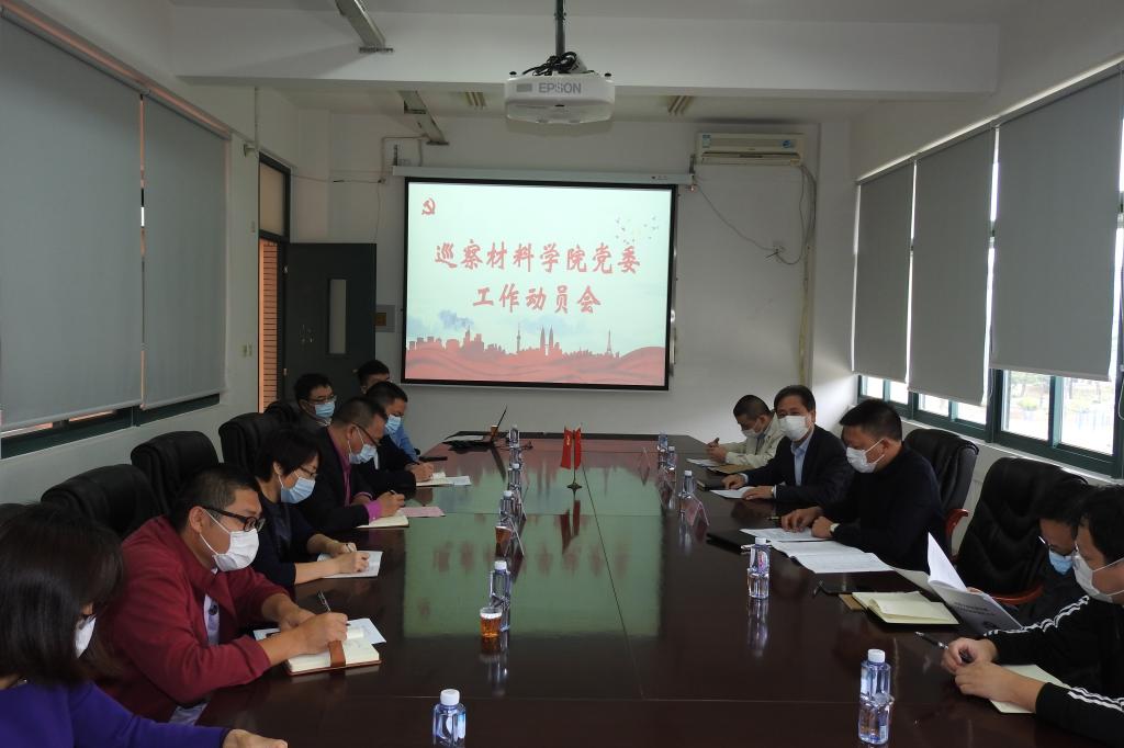 校党委副书记、纪委书记、巡察工作领导小组副组长毕明强出席会议并讲话。两校区巡察组全体成员,外国语学院、材料科学与工程学院党政领导班子成员、各系部负责人、科级干部、教工党支部书记参加会议。
