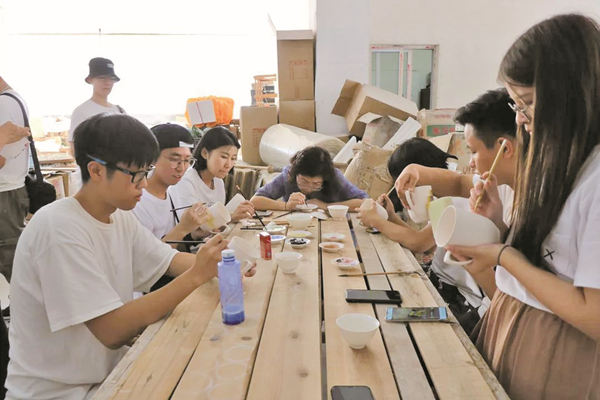 港澳台侨学生参观德化陶瓷制作工坊时进行创作