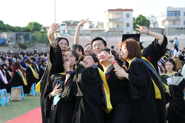“从2016年的第一眼到如今的最后一面,我们年少的身影,一直住在彼此的青春之中,也刻在华大60年的光阴里……”毕业典礼上,文学院乔天锐、化工学院李爱多作为毕业生代表发言,并共同带领全体毕业生宣誓:“不忘父母养育,铭记师长教诲。会通中外文化,并育善德博才。让先进成为个性,让优秀成为习惯。勤奋务实,用汗水和才智追求真理。果毅力行,以青春和热血奉献社会。敢于担当,以奋斗之我谱写壮丽华章。擦亮侨校金字招牌,让明日的华侨大学以我为荣!”