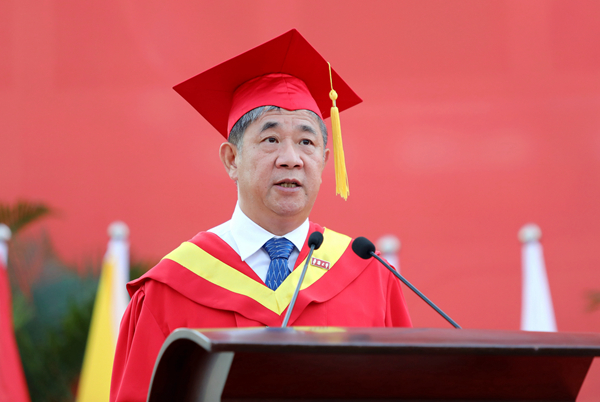 校长徐西鹏则以“独立、坚持、敢不同”为题,勉励大家步入社会后继续保持独立的思考与追求,自强自立、摆脱依赖,在不断探索与实践中成长蜕变;面对挫折与挑战时,不畏艰难,坚持到底;面对社会变革时,充满好奇,善于学习,更新思维,保持创新求变的活力。他说:“作为华侨大学新的力量,我们可能不是奔涌的后浪,只是一颗跃入人海的小水滴,但是我们要用超越常人的坚持和勇于突破自己的力量,泛起层层浪花,成就独属于自己的人生波澜。”