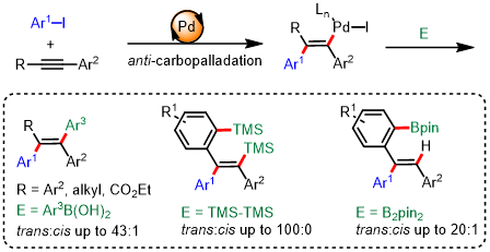 内炔烃反式碳钯化构建四取代和三取代烯烃