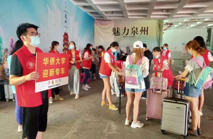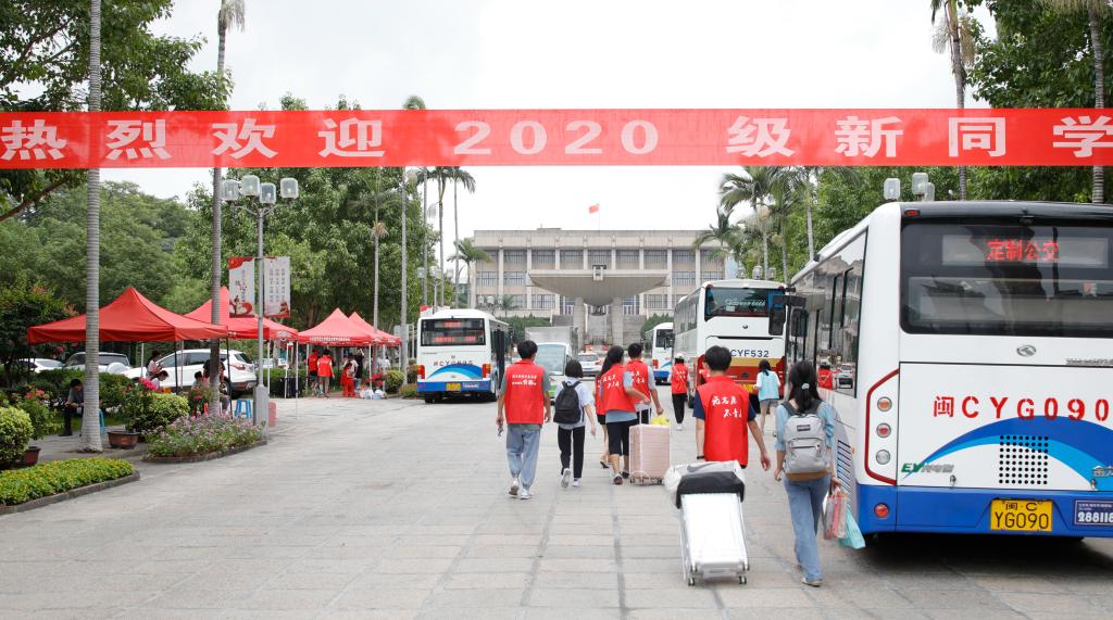 “热烈欢迎2020级海内外新同学!”在红色的欢迎横幅下,学校各处迎新工作有序开展,一批又一批新生顺利入住华园。当日上午,校党委书记徐西鹏、校长吴剑平分别前往厦门校区、泉州校区、华文学院各迎新点,与新生交谈,慰问迎新志愿者与工作人员。