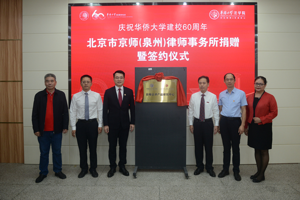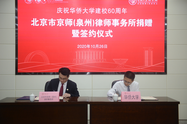 在我校即将迎来60周年校庆之际,10月26日,北京市京师(泉州)律师事务所向我校教育基金会捐资100万元,用于与法学院设立京师法律产品研究基金,并共建京师法律产品研究中心。