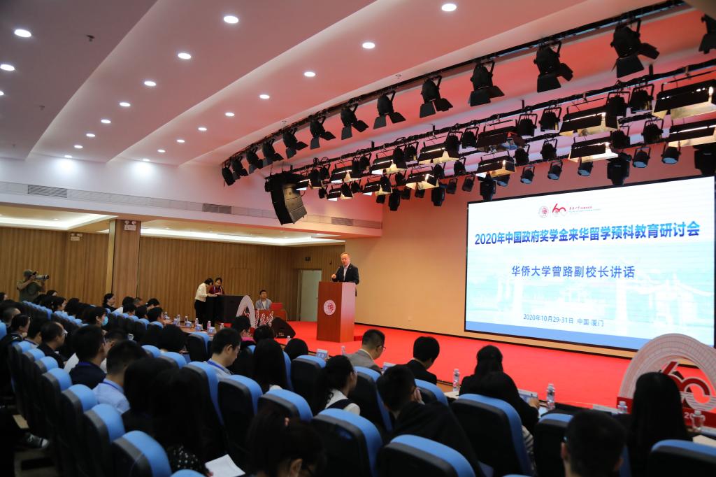 10月30日,由国家留学基金管理委员会主办、华侨大学承办的2020年中国政府奖学金来华留学预科教育研讨会在我校龙舟池校区召开。来自中国政府奖学金预科教育指导委员会、北京语言大学、天津大学、山东大学、东北师范大学、对外经济贸易大学、南京师范大学、华中师范大学等单位及华侨大学的专家学者齐聚一堂,共同总结和探讨来华留学预科教育所取得的成功经验,研讨分析当前新冠疫情防控常态化下的预科教育管理。