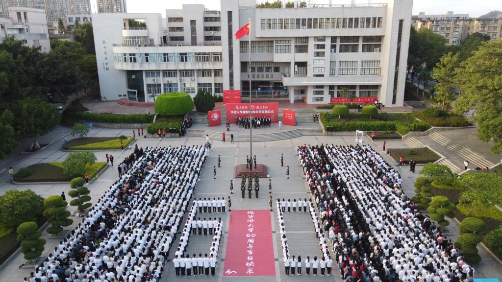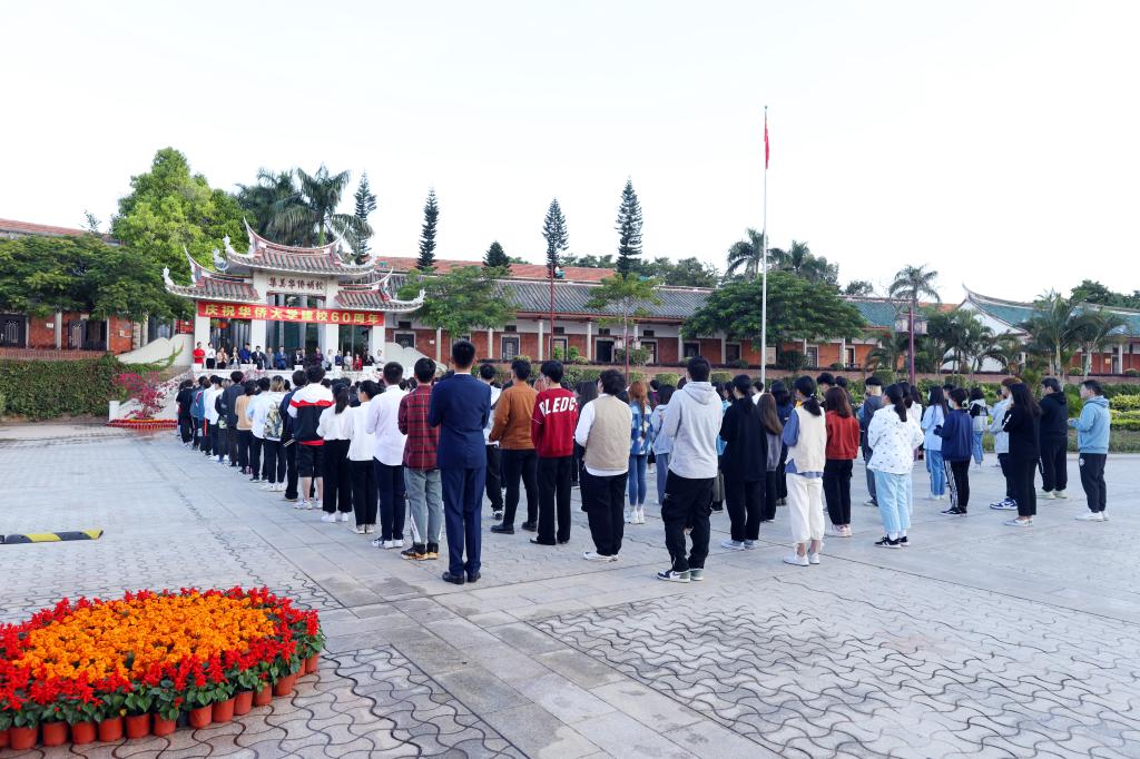 11月1日上午7点,庆祝华侨大学建校60周年升国旗仪式在泉州校区廖承志广场、厦门校区A区广场、华文学院南门广场同时举行。