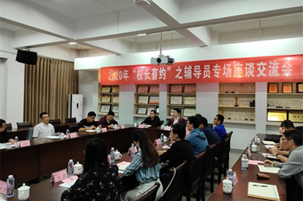 11月5日晚,2020年“校长有约”之辅导员专场座谈交流会在金川活动中心209会议室召开。校长吴剑平出席座谈会。党委学工部负责人及校团委、各学院近20名辅导员参加了座谈。