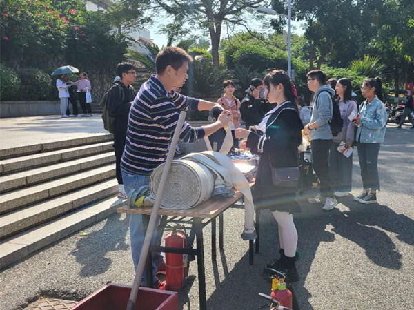 11月9日上午,保卫处在厦门校区食堂前庭广场开展“119”消防日主题活动。活动现场设置消防器材展示、消防安全知识手册发放、大学生消防体验等环节,重点讲解日常防火常识以及发生火灾时逃生自救技能、火灾报警注意事项等内容,吸引近千名师生到场参与。