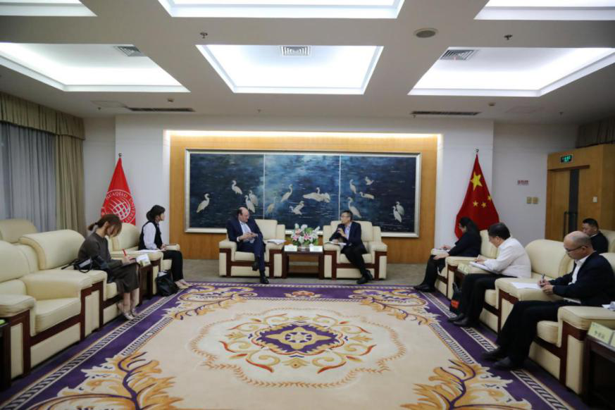 讲座前,吴剑平、王丽霞与高大伟进行座谈交流,双方就华侨大学同欧洲国家高校开展合作进行了探讨。