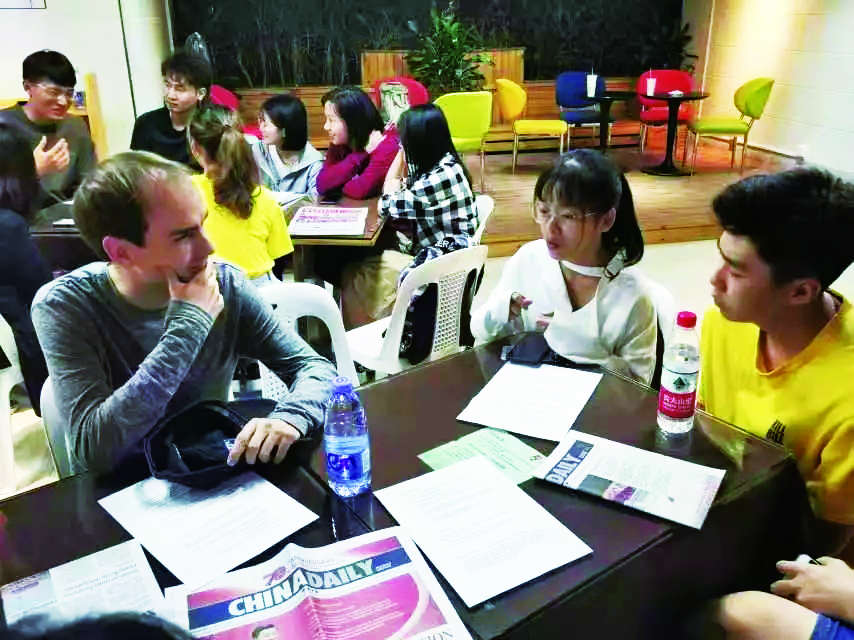 作为外籍教师,Jan还积极参与校园内第二课堂的外语教学和交流活动,每周在1960众创空间举行的“英语角”活动,总能看到他的身影。“和日常课堂教学略有不同,‘英语角’的形式更加多样,对象更加多元,氛围也更加活跃。”Jan说,和来自各个学院的同学一起交流口语,分享生活学习趣事十分有意思。而他也每每围绕特定的话题,比如传统节日﹑各地美食﹑时事新闻等,与同学们围坐成一圈,以“问”和“答”的形式进行对话,比较一些中西方文化的差异,加深学生对语言文化的了解。