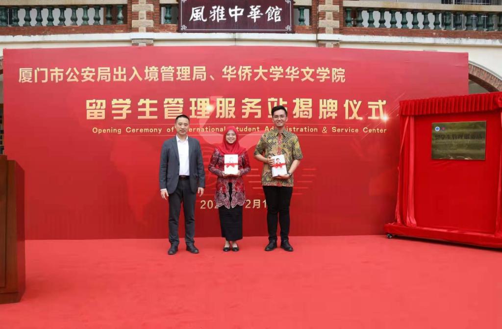 该服务站由华侨大学与厦门市公安局出入境管理局联合打造。厦门市公安局副局长邓海鹰、华侨大学副校长刘塨、厦门市侨联副主席邓飚、厦门市公安局出入境管理局局长戴伟荣等共同为其揭牌。
