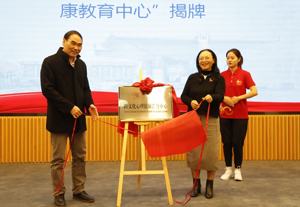 王秀勇、赵冰洁为“华侨大学跨文化心理健康教育中心”揭牌