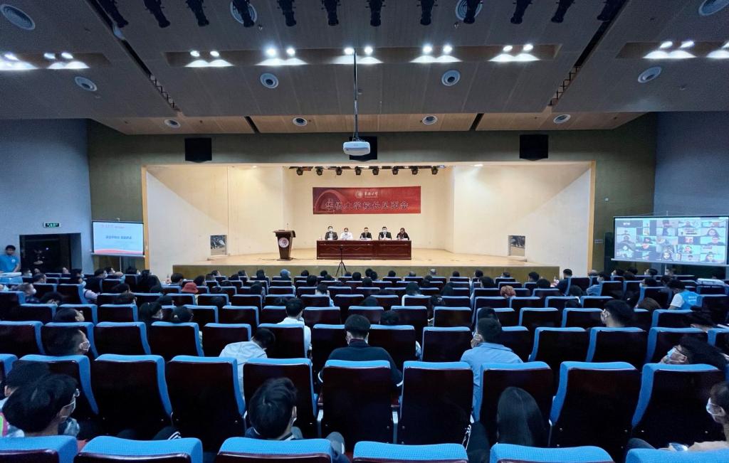 12月29日晚,华侨大学第十四次校长见面会在王源兴国际会议中心举行。校长吴剑平,副校长彭霈、王秀勇、王丽霞,校长助理张云波以及学校相关职能部门负责人,来自校级学生组织、校园媒体、各学院的学生代表,齐聚一堂,互动交流,共话学校未来发展。本次校长见面会首次增加了线上视频通话的方式,连线仍在海外20多个国家和地区的学生代表,让因疫情无法返校的他们参与其中,提出自己的困惑和诉求。
