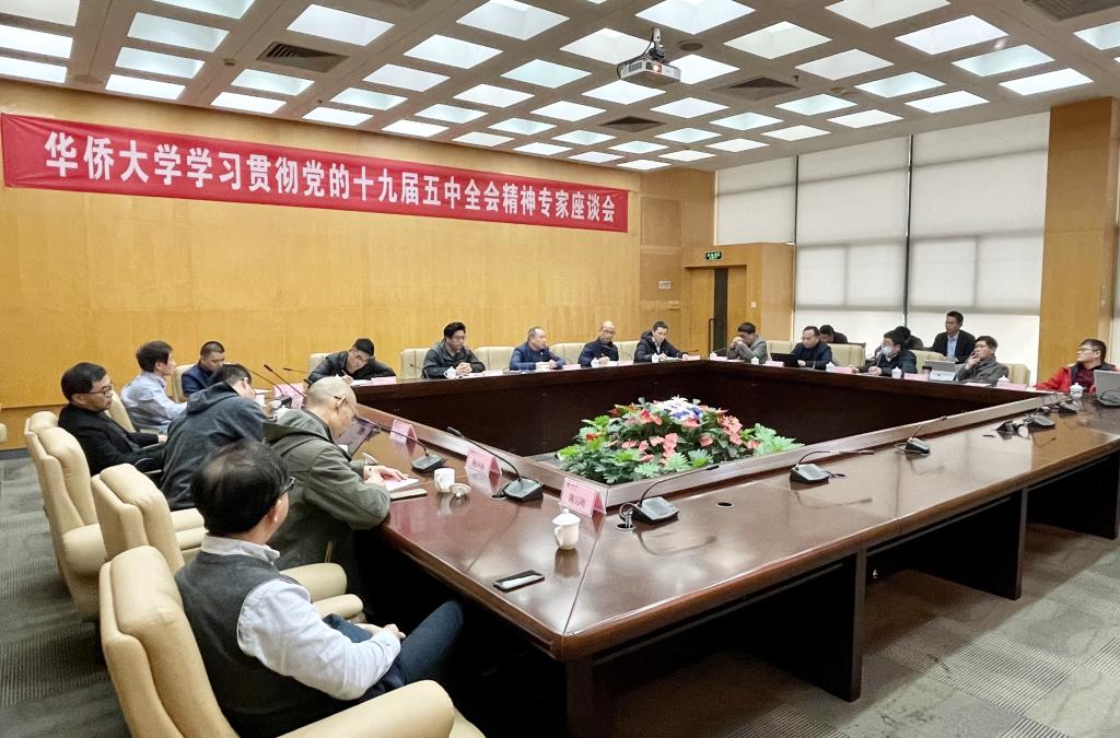 2020年12月30日下午,我校在王源兴国际会议中心202会议室召开学习贯彻党的十九届五中全会精神专家座谈会,副校长曾路出席会议并致辞,党委宣传部、党委统战部、国际交流合作处、学生工作处、社会科学研究处等单位负责人以及来自哲学与社会发展学院、文学院、华文学院、外国语学院、新闻与传播学院、音乐舞蹈学院的11名专家学者与会。