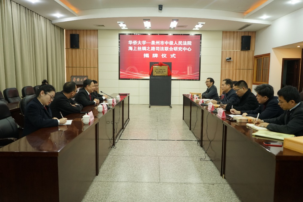 华侨大学-泉州中院海上丝绸之路司法联合研究中心(以下简称“联合研究中心”),1月6日揭牌成立。泉州市中级人民法院院长陈明,华侨大学党委副书记、纪委书记毕明强共同为联合研究中心揭牌。