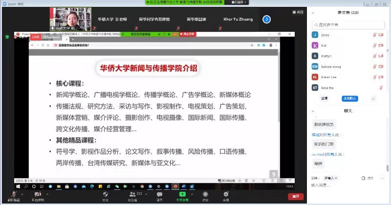 随后,我校还分别举办两场面向马来西亚学生的线上招生宣讲会,通过播放宣传视频、PPT讲解、案例展示等方式,详细介绍学校的校园环境、学科实力、招生政策和培养特色,解答学生在专业和报考方面的问题。