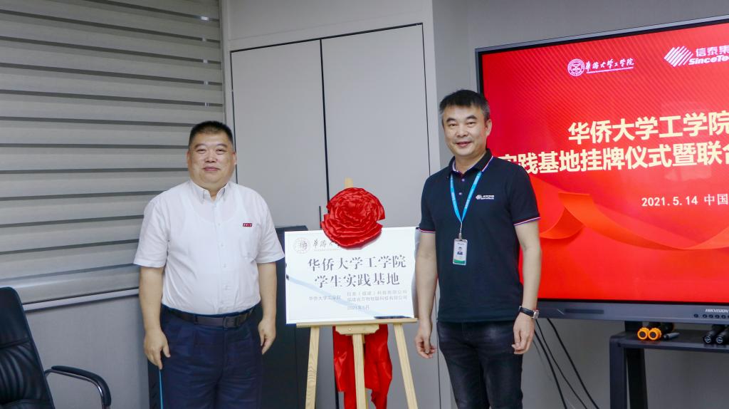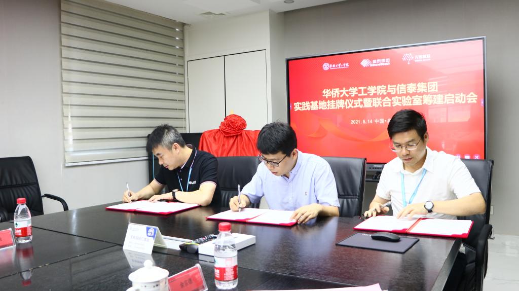 5月15日,华侨大学工学院与福建信泰集团下属两家企业——信泰(福建)科技有限公司、福建省万物智联科技有限公司联合签约共建学生实践基地、实验室,深化校企合作。副校长彭霈率科学技术研究处、工学院党政领导班子和青年教师等一行赴晋江出席签约、授牌仪式。