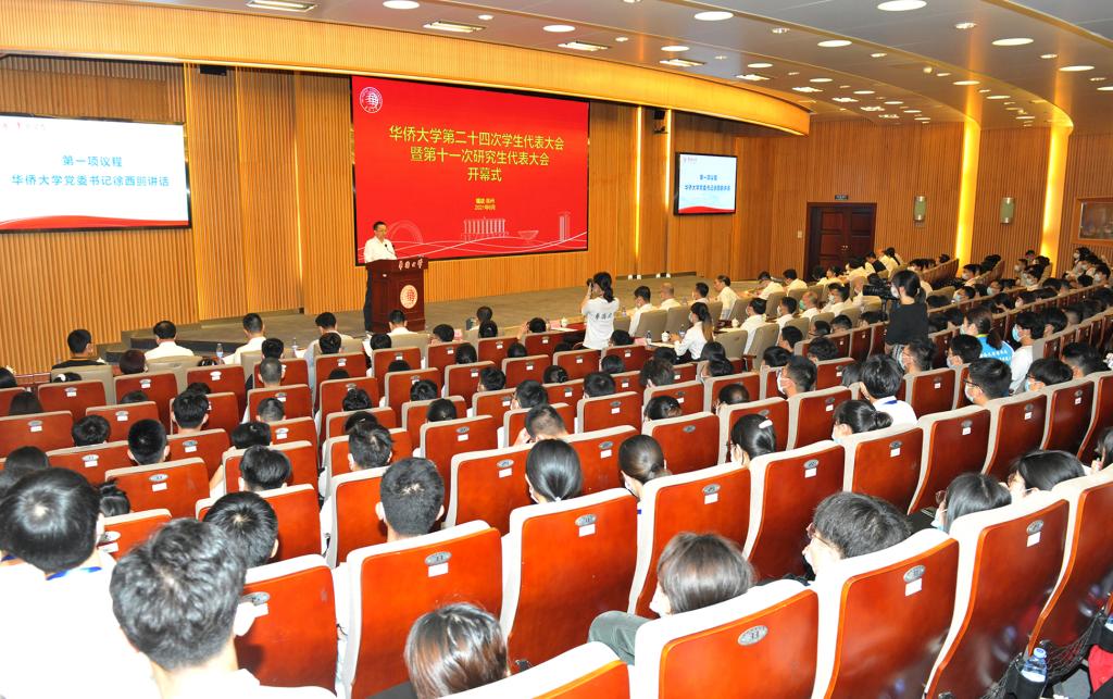 华侨大学第二十四次学生代表大会暨第十一次研究生代表大会6月20日在陈嘉庚纪念堂科学厅召开,来自全校各学院共计244名本科生代表、96名研究生代表参加会议。