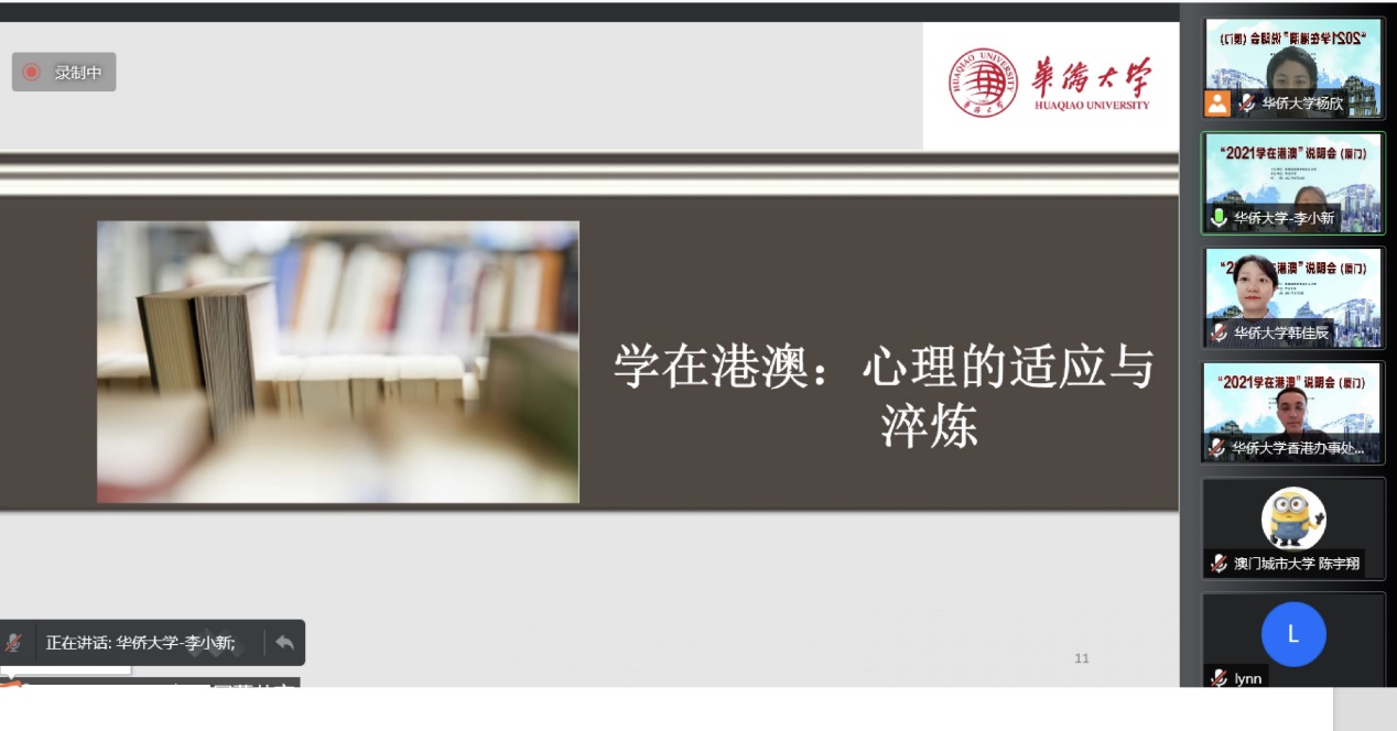 8月24日下午,由教育部港澳台事务办公室主办、我校承办的“2021学在港澳”说明会(厦门)在线上召开。会议旨在帮助即将赴香港、澳门高校学习的内地学生更好地了解港澳情况,尽快适应在港澳的学习和生活。