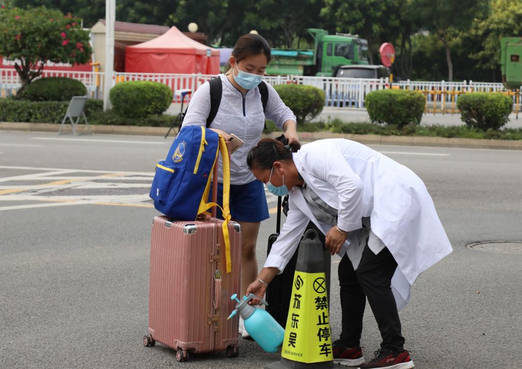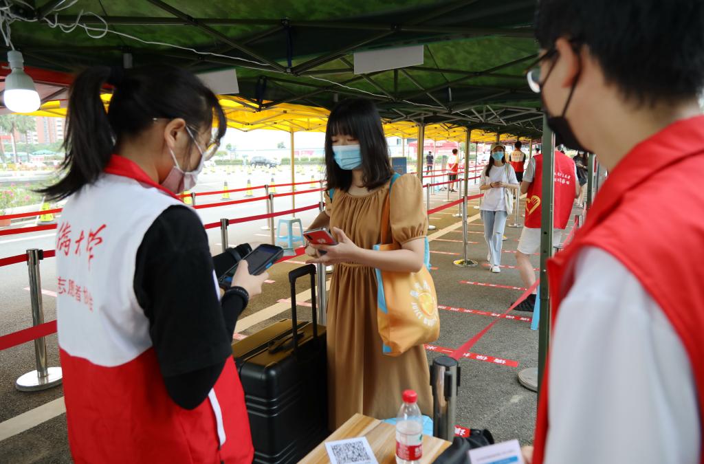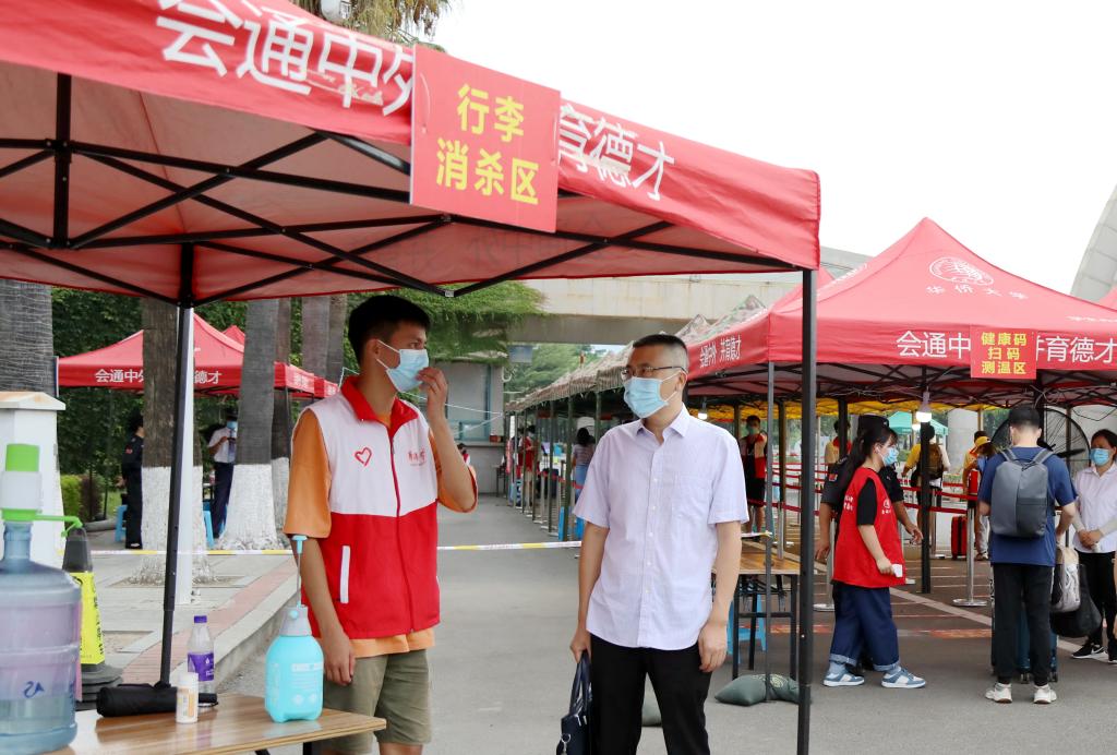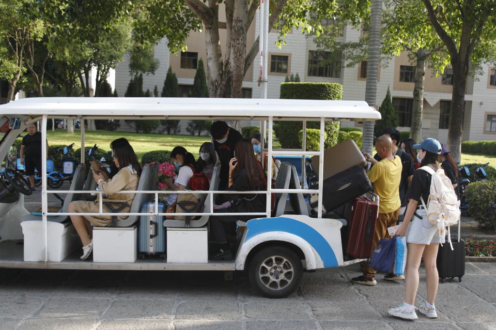 行李消杀、体温检测、健康码扫码、刷一卡通……在志愿者和后勤等工作人员的帮助下,同学们高效、有序返校。入校门后,学校提供免费电瓶车,接送同学们返回宿舍。