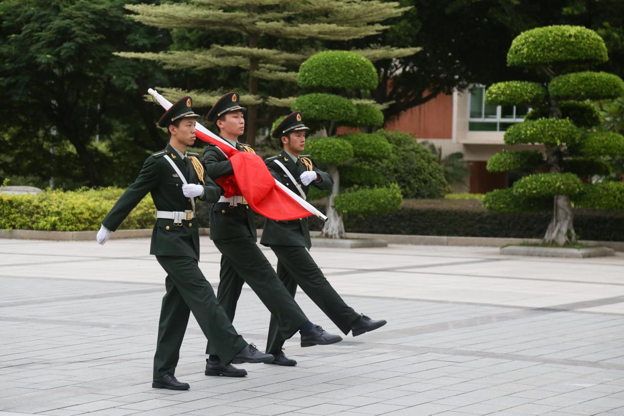 10月1日早晨7点,在华侨大学廖承志广场,随着激昂的《义勇军进行曲》响起,鲜艳的五星红旗准时升起。在疫情防控的非常时期,本次升旗仪式相聚“云”端,采用微博、抖音两个平台进行线上同步直播。