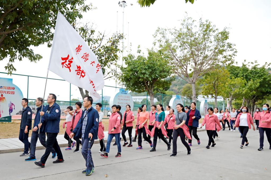 活动现场,教职工们个个热情高涨、精神抖擞,并做好充分的热身运动。随着“砰”一声发令枪响,健步走活动正式开始。教职工们在各单位队旗的引导下,按照指定路线前进,浩浩荡荡的队伍宛如一条游动的长龙环绕着校园道路,为秋日的华园增添了一道亮丽的风景线。