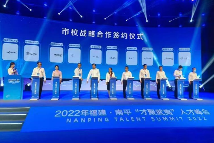 5月31日,在南平市建阳区举行的“2022年福建·南平‘才聚武夷’人才峰会”上,华侨大学与南平市人民政府签订了市校战略合作协议,并举行“南平市生物质低碳制造院士专家科技特派员创新工作站”授牌仪式。