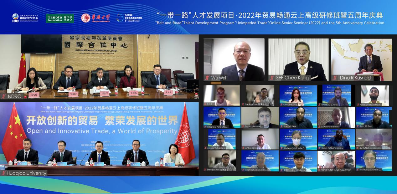 10月27日,由国家发展和改革委国际合作中心和北京陈江和公益基金会主办、华侨大学承办的“一带一路”人才发展项目·2022年贸易畅通高级研修班暨五周年庆典举行。