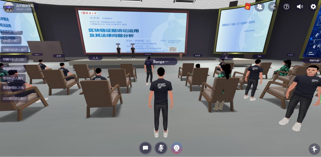 当晚,陈慰星教授与江西财经大学许林波博士通过元宇宙平台,开展了一堂以“区块链证据诉讼运用及其法律问题分析”为主题的《民事诉讼法》+《电子证据学》跨校联合授课。