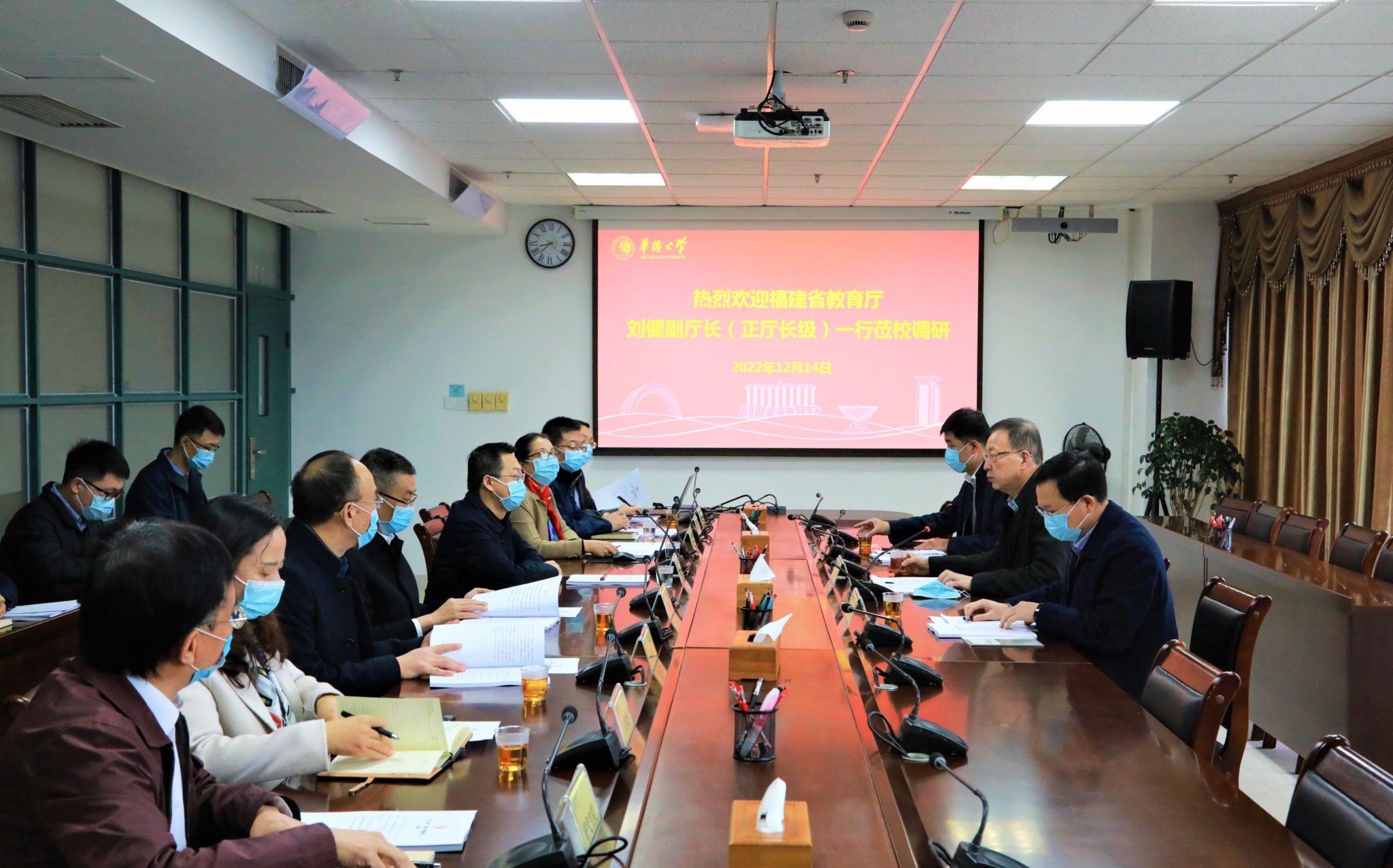 12月14日,福建省教育厅党组成员、副厅长(正厅长级)刘健一行来校调研“双一流”建设情况,与校领导徐西鹏、吴剑平、王丽霞、何纯正等在行政研发大楼2013会议室交流座谈。