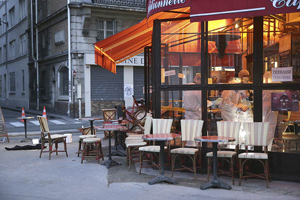 当地时间11月14日凌晨,法国警方在受到袭击的餐厅内搜集证物。