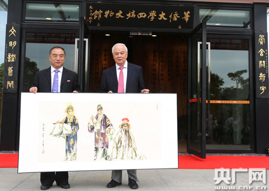 央广网厦门11月2日消息(记者黄光辉)由华侨大学、日本文培学院、华人日本频道主办的“宣纸上的国粹——李文培水墨戏曲人物画展”在11月1日在华侨大学四端文物馆开幕。