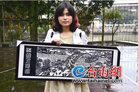 此次展出的《清明上河图》和《红楼梦》,被其视为代表作。她说,前者共用了50多个小时,除了白天上课,基本都在“加班”;《红楼梦》则花了近10天的时间。