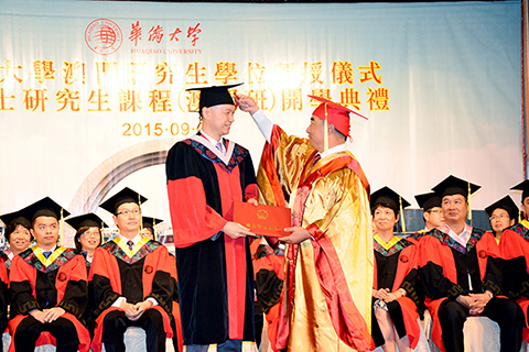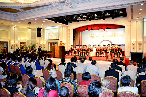 儀式於昨晚七點假萬豪軒酒家舉行,中聯辦副主任孫達,文化教育部副部長徐婷,澳門高等教育輔助辦公室職務主管丁少雄,教青局代副局長黃健武,工聯常務副會長陳錦鳴,華僑大學校長賈益民,副校長吳季懷,華僑大學澳門基金會會長唐志堅華僑大學董事會董事、全國政協委員林金城、王彬成,澳門中華教育會理事長陳虹,華僑大學董事會董事潘偉民,華僑大學兼職教授張健中,澳門鏡湖護理學院院長尹一橋,澳門城市大學副校長孔繁清,澳門經濟法律學會理事長何金明,澳門業餘中心校長黃進等出席,見證澳門研究生學位頒授儀式暨碩士研究生(澳門班)開學典禮。