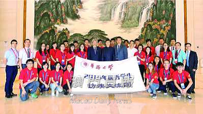 【本報消息】由華僑大學澳門校友會主辦,華僑大學澳門聯絡處協辦的“二○一五華僑大學優秀學生訪澳交流團”昨分別拜訪中聯辦、中銀及本報,並參觀多個世遺景點。