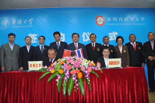 结业典礼后,华侨大学与吞武里大学签署了“合作建设吞武里大学华文学院框架协议”。协议旨在迎接未来三年东盟一体化的发展形势需要,进一步加强中、泰两国文化教育领域交流合作,共同推动东盟国家华文教育的发展。