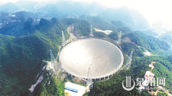 500米口径球面射电望远镜,从预研到建成历时22年,是具有我国自主知识产权、世界最大单口径、最灵敏的射电望远镜。 (新华社)