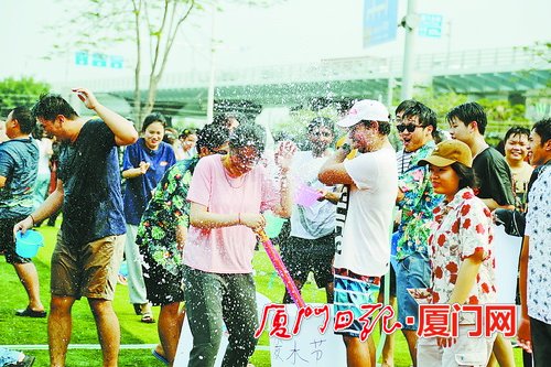 本报讯(文 记者 应洁)昨日(4月14日)下午,华侨大学华文学院2023年东南亚泼水节在龙舟池校区拉开帷幕,吸引400多名师生参与。各种肤色的留学生身着不同风格的服饰,在校园里奔走嬉戏,成为龙舟池畔一道充满异域情调的风景线。