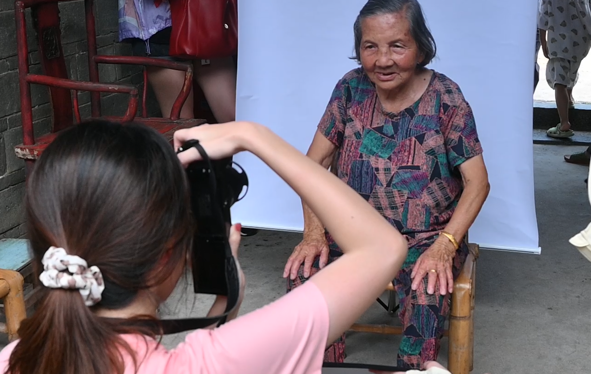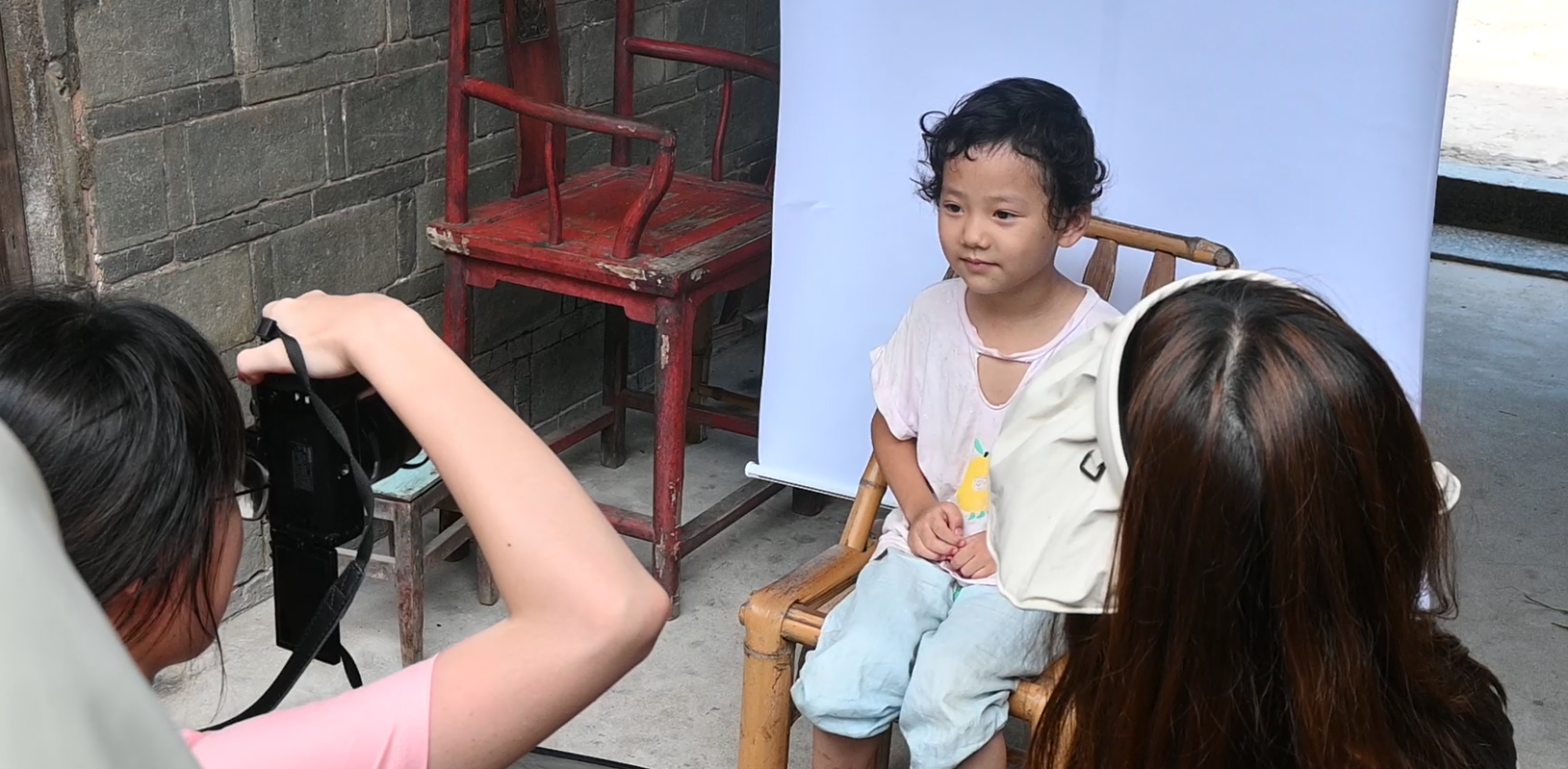 团队中有专业的摄影成员和后期成员,他们具备丰富的摄影经验和修图技术。当得知土楼里的老幼群体的有拍摄证件照的需求时,实践团成员将自己的专业知识和技术运用于实践,搭建临时的摄影棚,热情访问邀请当地的老人和孩子参与拍摄,有夫妻携手前往,有小朋友相约而来。除了拍摄证件照,实践团还热情地为居民拍摄生活照。