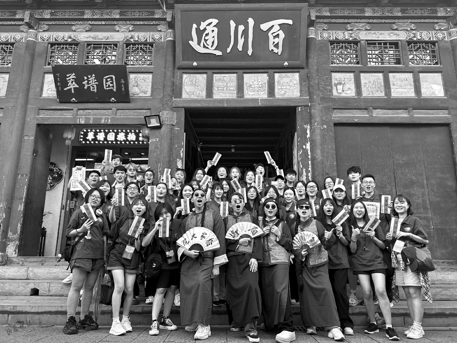 7月30日,华侨大学45名来自全球13个国家、地区的学生与老师,来到平遥古城百川通晋商文化博物馆实践研习。学生们通过亲身体验书法艺术、古代印刷术等手工制作趣味教学,以及掌柜的角色扮演了解了票号的汇兑业务,增加了实践体验感,体验独具特色的晋商文化。本次研习活动的主题为“追寻足迹、铸魂育人”,旨在了解三晋大地璀璨的中华文明,感知晋商非遗文化,增进来自不同国家、地区的学生对于中华传统文化的认同感,铸牢中华民族共同体意识。