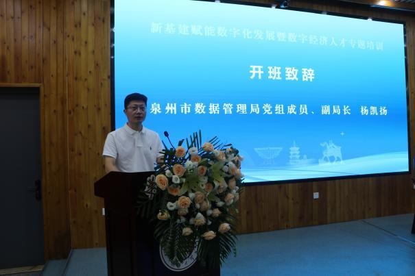 泉州市数据管理局党组成员、副局长杨凯扬作开班讲话。泉州市数据管理局四级调研员张诗琴、中国信息通信研究院广州分院数字孪生与数字化研究部主任王素斌、华侨大学法学院副教授骆旭旭分别以“国情省情市情辅导——泉州新基建基本情况”、“全域数字化转型”、“公共数据授权运营的法律合规”等为主题作了精彩报告。