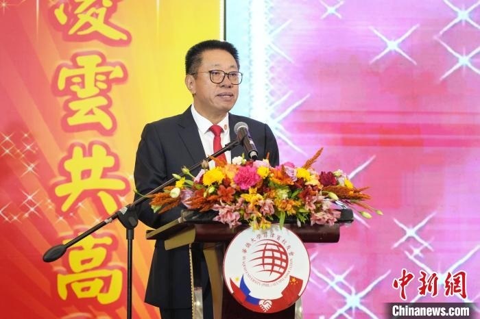 图为中国驻菲律宾大使馆领事施伟健致辞。 记者 张兴龙 摄