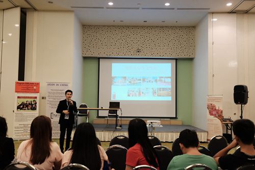 参展期间,华侨大学华文学院印尼校友协助担任翻译,并与前来咨询的学生及家长分享就读华侨大学的学习生活经验。