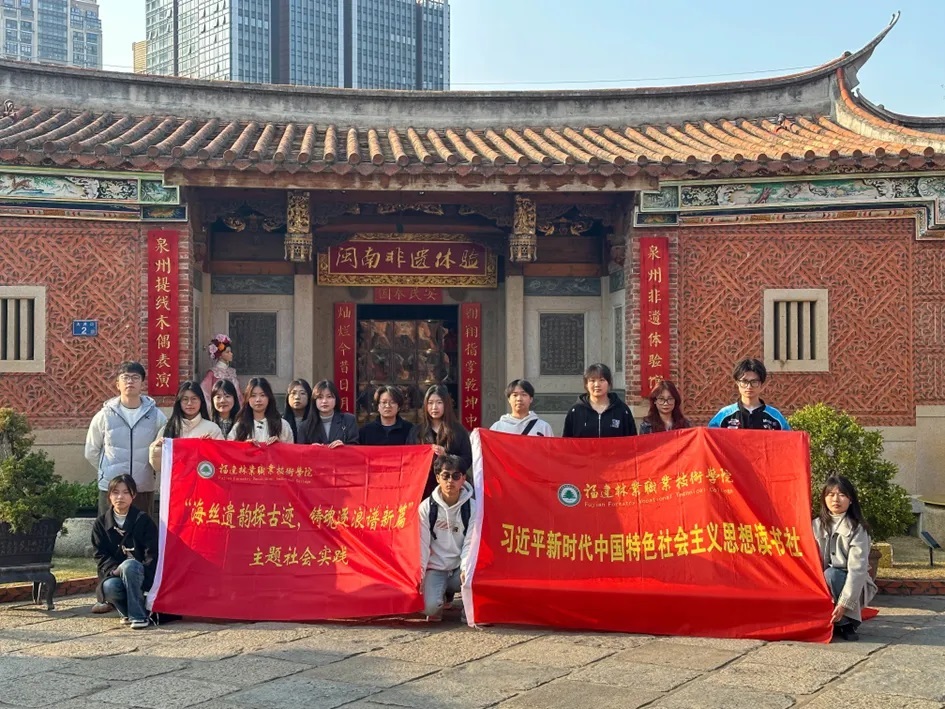 福建林业职业技术学院习近平新时代中国特色社会主义思想读书社实践队近日奔赴泉州,开展以“海丝遗韵探古迹,铸魂逐浪谱新篇”为主题的寒假社会实践活动。