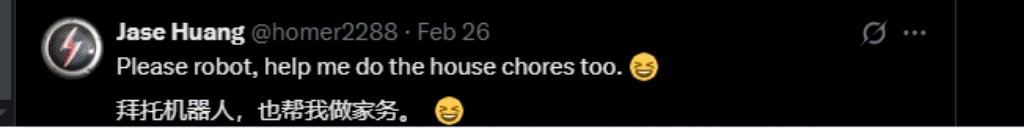 还有外国网友表示,“机器人,请你也帮我做家务吧” 。另一条留言则调侃,“我当然也想为我的侄子拥有它,而不是为了我自己”。