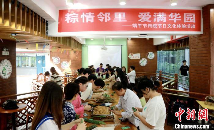 5月30日,华侨大学境内外学生体验包粽子。(吴江辉 摄)
