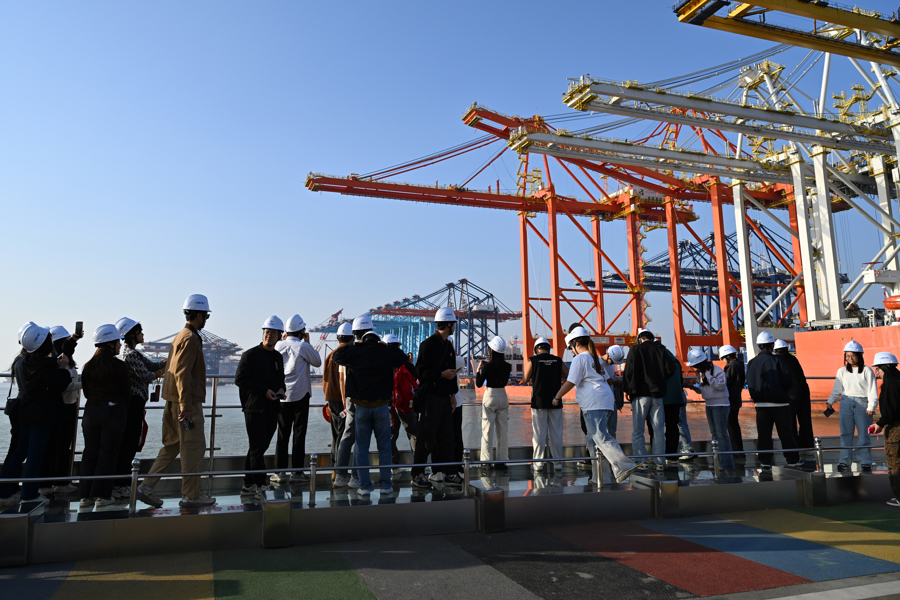 师生参观振华重工零号码头。