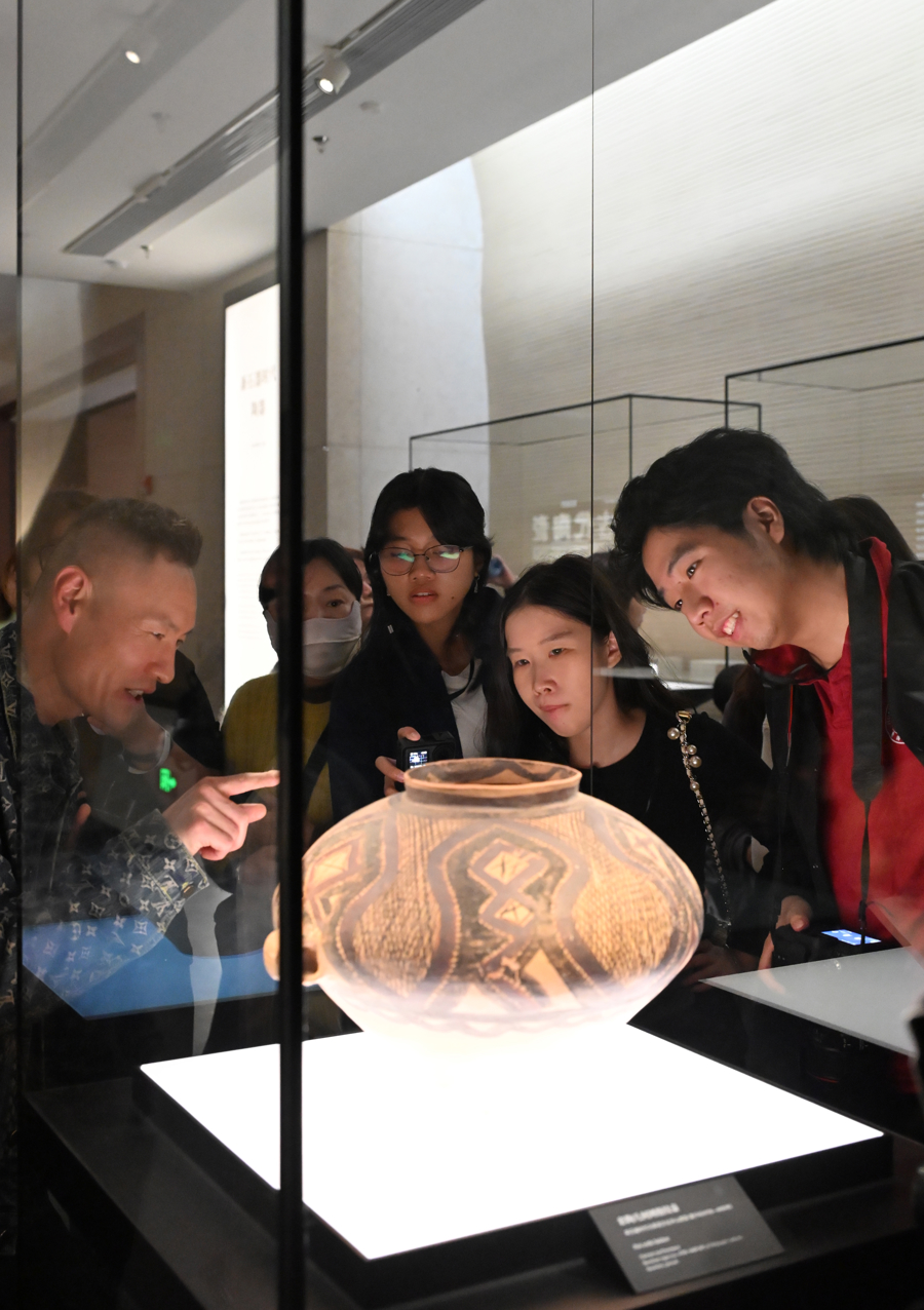 师生在上海博物馆东馆参观。