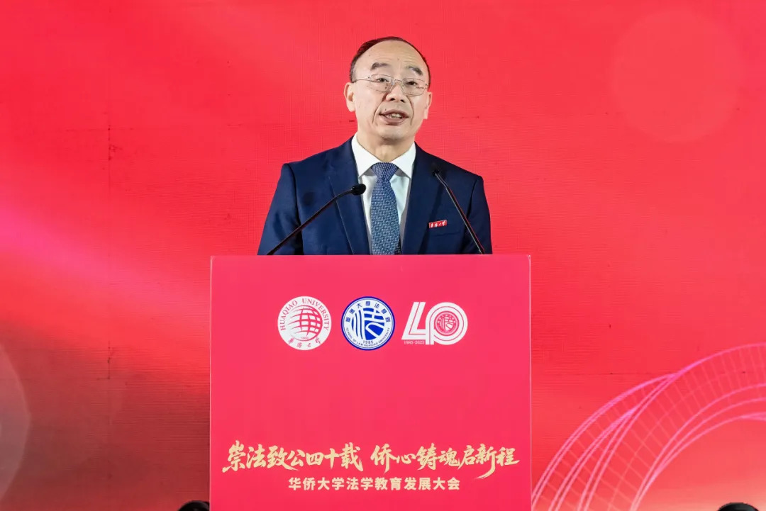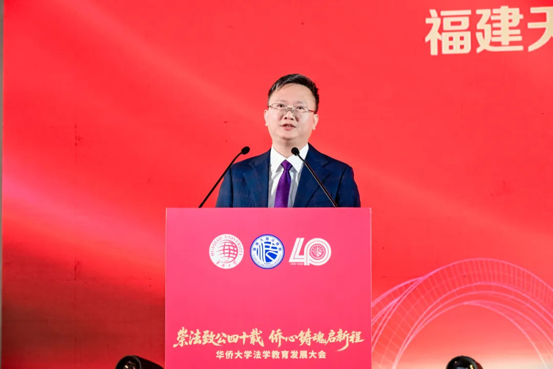 何纯正代表华侨大学向长期关心支持法学院建设与发展的各界人士表示感谢。他肯定了法学院自2015年30周年院庆以来,在人才培养、学术研究、服务地方法治建设与践行为侨服务特色使命等方面取得的卓越成就和历史性突破。希望法学院以法学专业创办40周年为新起点,守正创新、勇于担当、再创辉煌,在全面深入推进依法治国的新时代,追求卓越谱“华”章、凝心聚力汇“侨”力、融入时代谋“大”局、敢于突破做“学”问,为国家和地方法治建设作出新的更大贡献。